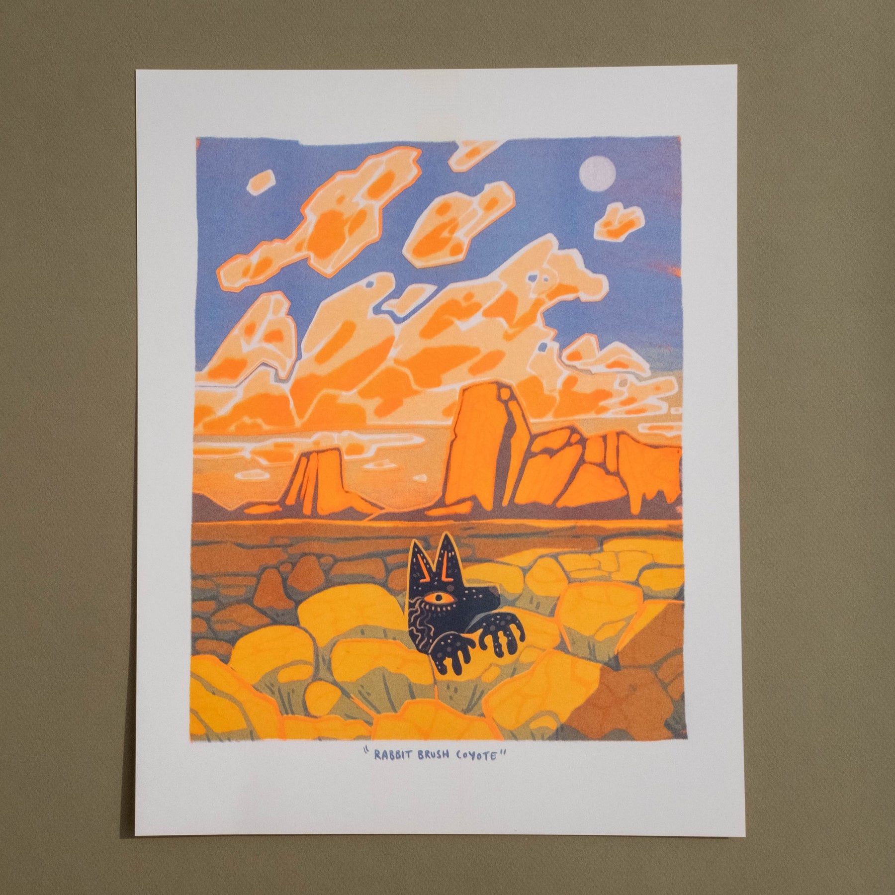 "Rabbit Brush Coyote" 11x14 Art Print by Pine Bones
